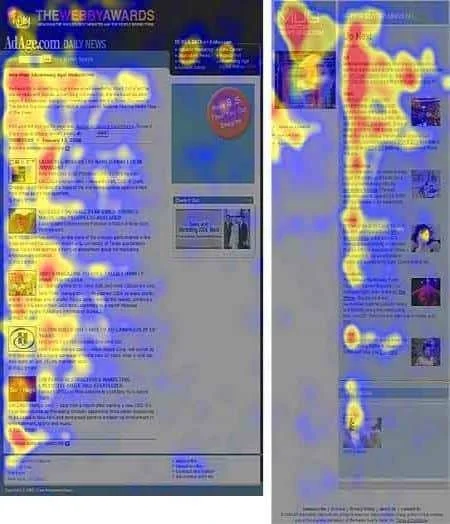 Como podemos apreciar por las áreas coloreadas en rojo, el lector se fija principalmente en los títulos. Debemos hacer que los títulos sean de mayor tamaño y trabajar la creatividad para hacerlos atractivos.